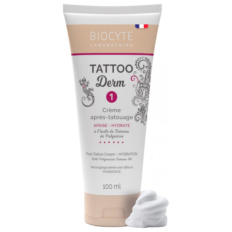 Biocyte Tattoo Derm 1 Crème Après Tatouage Apaise et Hydrate 100 ml est une crème post-tatouage spécialement conçue pour offrir un soulagement et une hydratation optimaux aux peaux fraîchement tatouées.