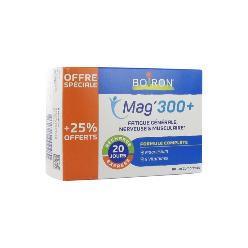 Boiron Mag'300+ 80 Comprimés + 20 Comprimés Offerts est un complément alimentaire à base de vitamines et de magnésium.