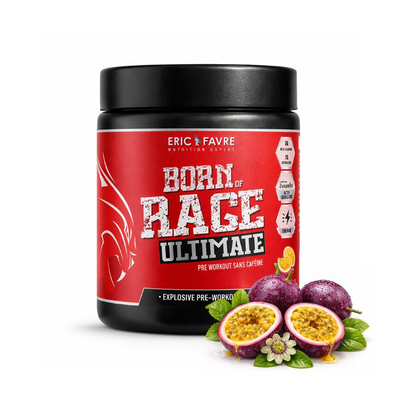 Avec Born of Rage Ultimate d'Eric Favre, profitez d'un pré-workout nouvelle génération conçu pour maximiser votre énergie, votre endurance et votre concentration pendant vos séances les plus exigeantes. Formule explosive 11 actifs incluant 3g de bêta-alanine, 2g de L-citrulline, 180mg de quercétine et l'ingrédiment breveté Zynamite® testé cliniquement.