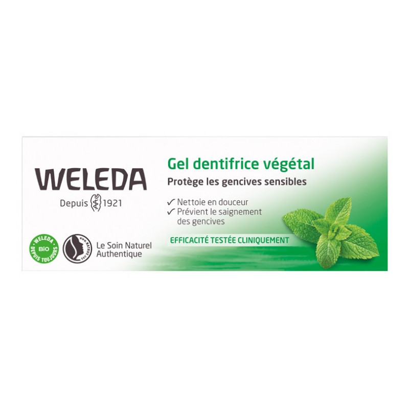 Weleda Gel Dentifrice Végétal 75 ml est un dentifrice doux élaboré pour nettoyer et protéger les dents et gencives sensibles. La combinaison unique d'extraits de myrrhe et de camomille, aux propriétés apaisantes, aide à préserver l'équilibre de la flore buccale. L'extrait de ratanhia renforce les gencives sensibles, en les protégeant des saignements. Ce dentifrice nettoie en douceur tout en préservant l'émail des dents. Les huiles essentielles naturelles de menthe verte et de menthe poivrée rafraîchissent l'haleine.