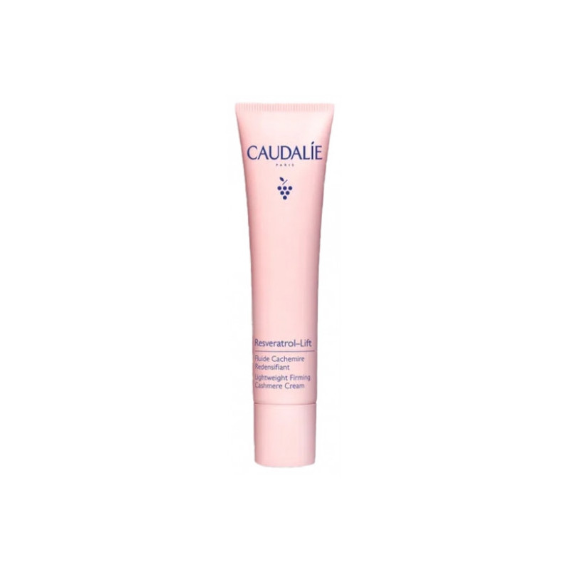 Caudalie Resveratrol [Lift] Fluide Cachemire Redensifiant 40 ml est un soin conçu pour agir en profondeur afin de redensifier la peau et lui redonner fermeté et élasticité. Sa formule innovante combine les bienfaits du resveratrol de vigne et d'un complexe d'acides hyaluroniques micro pour une peau visiblement raffermie, lissée et matifiée. Elle aide à réduire l'apparence des pores et des imperfections pour un teint plus uniforme et éclatant. La peau est durablement hydratée, jour après jour elle paraît plus lisse, plus ferme et visiblement plus jeune. Sa texture légère et soyeuse pénètre rapidement, laissant la peau douce et veloutée, délicatement parfumée.