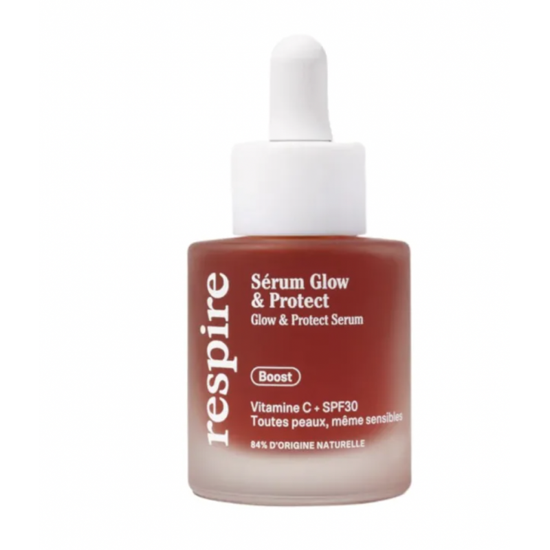 Le Sérum Glow & Protect SPF30 de Respire est un soin quotidien qui révèle l’éclat de la peau tout en la protégeant.
