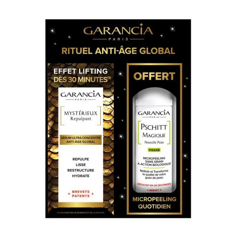 Garancia Mystérieux Repulpant 30 ml + Pschitt Magique Nouvelle Peau 10 ml Offert est une combinaison de deux produits de soin anti-âge et nettoyants pour le visage.