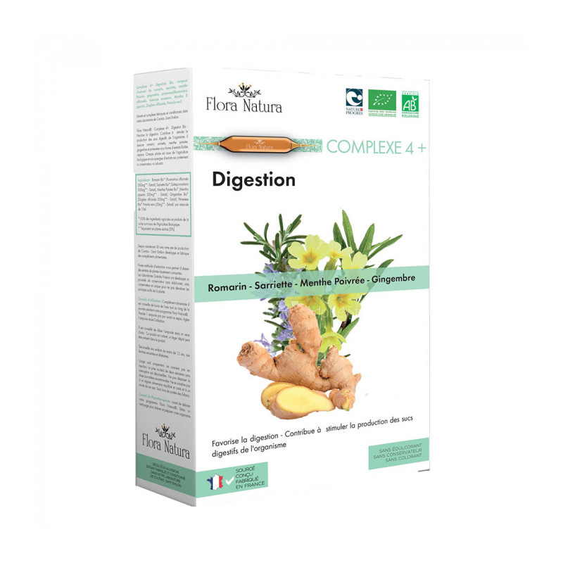 Complexe digestion, favorise la digestion, contribue à stimuler la production des sucs digestifs de l'organisme. Il associe romarin, sarriette, menthe poivree et gingembre sous forme d'extraits fluides aqueux. Chaque plante est issue de l’agriculture biologique et nos synergies d’extraits ne contiennent ni conservateur, ni colorant