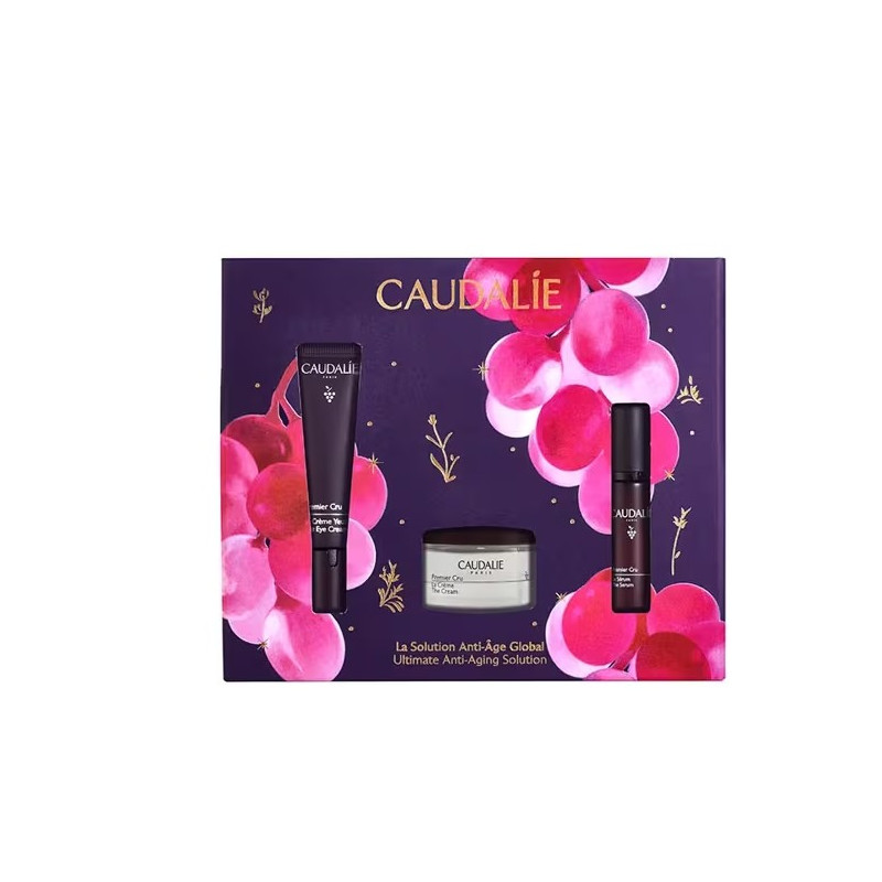 Découvrez Premier Cru, la collection anti-âge absolu de Caudalie, pour une peau visiblement plus jeune. Retrouvez dans ce coffret : la Crème Yeux Anti-Âge Global Premier Cru best-seller + 2 produits de la même collection en formats voyage offerts.