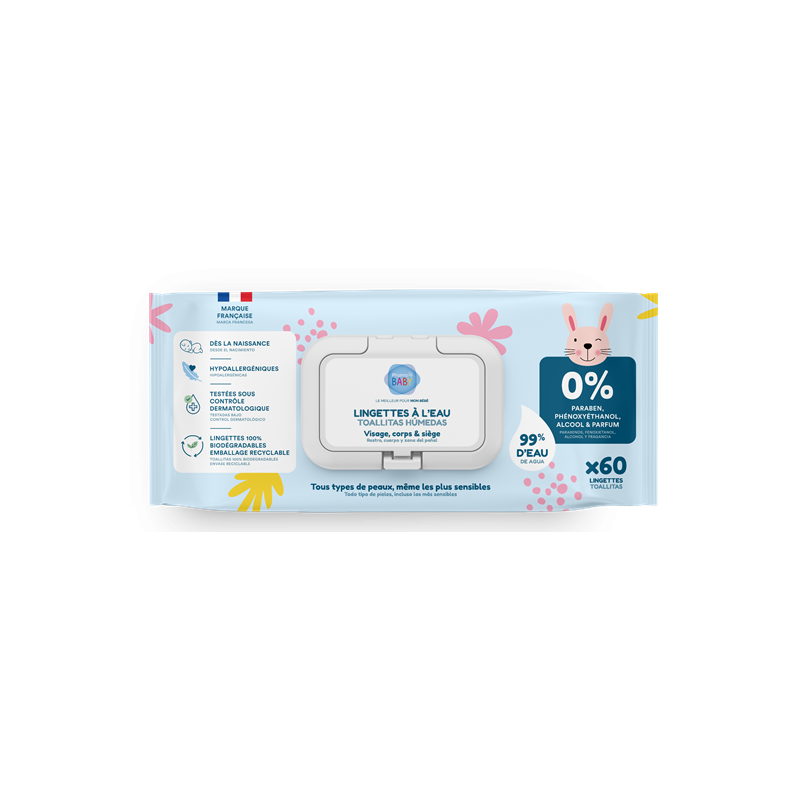 Lingettes à l'eau tout types de peau même les plus fragiles