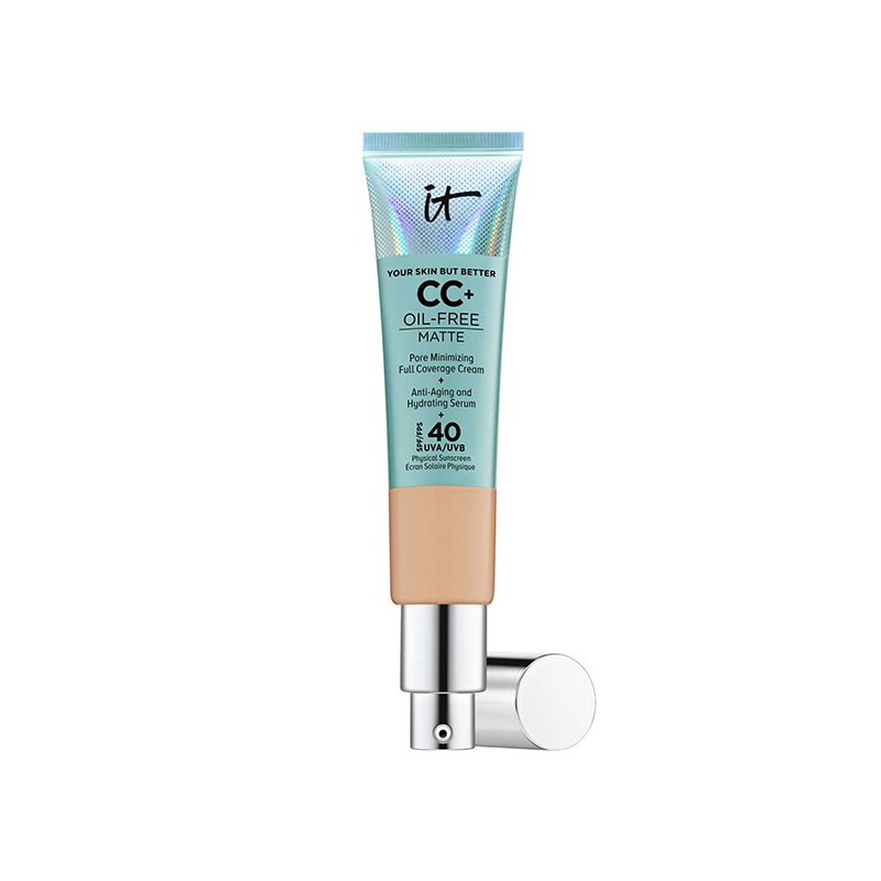 IT Cosmetics Fond de Teint Your Skin But Better CC+ Oil Free Matte Crème Correctrice Mate SPF40 Medium Tan 32ml est à la fois Crème Correctrice Haute Couvrance, Correcteur Hydratant et Protection SPF 40 Anti-Âge !