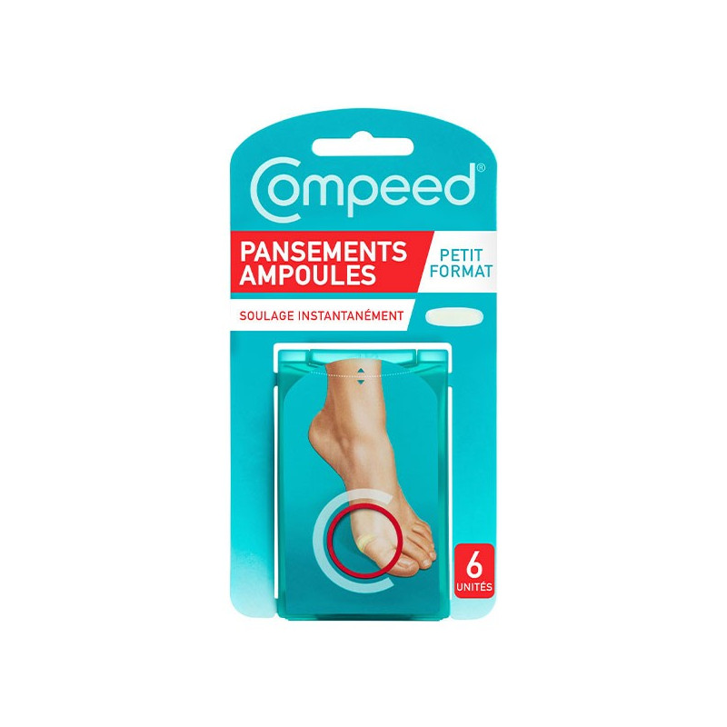 Compeed Pansements Ampoules Petit format protège la peau, soulage la douleur et aide à la cicatrisation.