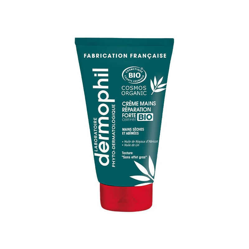 Dermophil Indien Crème Mains Réparation Forte Bio 75ml assure une réparation chrono des mains abîmées.