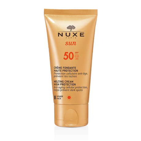Avant l’exposition, appliquez généreusement la Crème Fondante Visage SPF 50 NUXE Sun. Renouvelez fréquemment surtout après avoir nagé ou vous être essuyé. Si vous n’appliquez pas suffisamment de produit, le niveau de protection solaire sera considérablement réduit. L’abus de soleil est dangereux. Evitez le soleil en milieu de journée. Un produit solaire ne vous procure pas