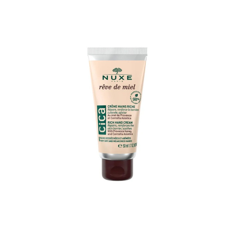 La Crème Mains Riche Cica Rêve de Miel de Nuxe est spécialement conçue pour chouchouter vos mains desséchées et abîmées grâce à la formule de la CICA Crème au Miel de Lavande de Provence et Centella Asiatica.