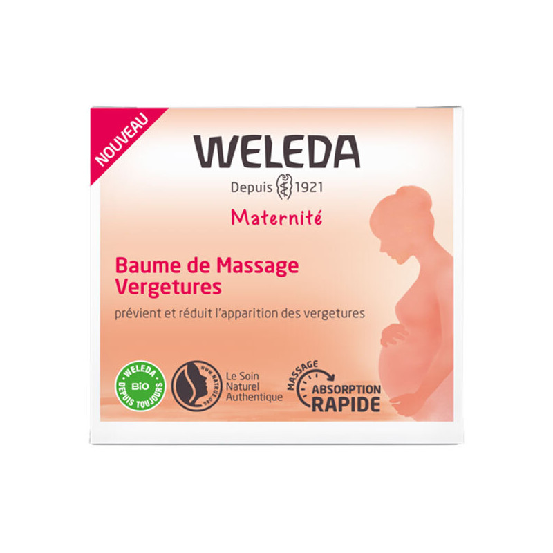 Le Baume de massage Vergetures de Weleda est un soin naturel formulé spécialement pour les femmes enceintes. Ce baume à absorption rapide contribue à augmenter l'élasticité de la peau pour prévenir et réduire l'apparition des vergetures.