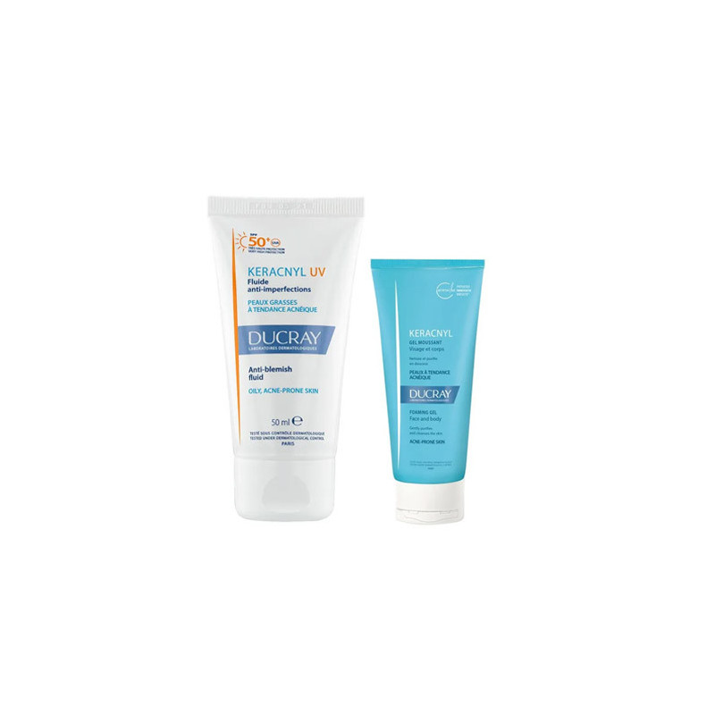 Le SOIN SOLAIRE KERACNYL UV Fluide anti-imperfections protège la peau grâce à des filtres UVA/UVB brevetés offrant un SPF50+. Il favorise l'élimination des imperfections grâce à l'action combinée et brevetée de la myrtacine® et du célastrol, 2 actifs d'origine naturelle. Il limite "l'effet rebond" : leur réapparition après l'arrêt de l'exposition aux UV*. Il offre un fini mat, un toucher sec et un contrôle durable de la brillance.
